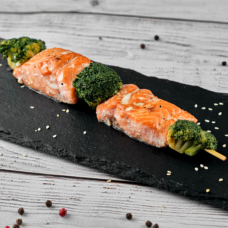 Шашлычки из ФОРЕЛИ и брокколи в соевом соусе "Попробуй", вес.