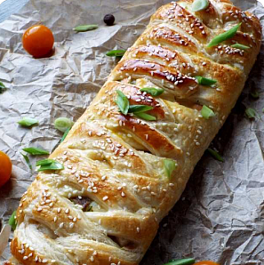 Состав: Филе судака, слоеное тесто бездрожжевое, сыр Гауда, сыр Моцарелла, шпинат, лук репчатый, масло сливочное, масло подсолнечное, кумин, мускатный орех, соль