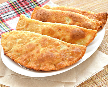 Хрустящие чебуреки с тонким тестом с пузырьками. Внутри сочная мясная начинка, а при жарке тесто хорошо запечатывается, и весь сок остается внутри.