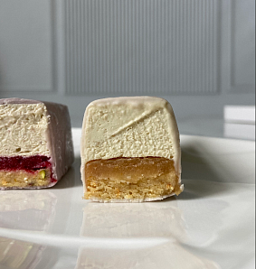 Состав: миндальная мука, сухое обезжиренное молоко, сироп топинамбура, кокосовая стружка, молоко, творожный сыр, белый шоколад без сахара, кокосовое молоко, кокосовое масло, яйцо, кукурузный крахмал, инулин, желатин, заменитель сахара(эритрит,сукралоза,лактулоза)
