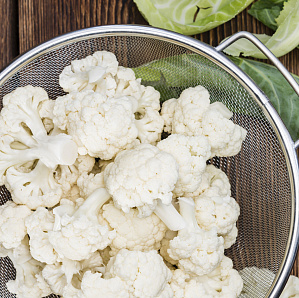 Белки цветной капусты богаты ценными аминокислотами (аргинином, лизином). В данной капусте немного целлюлозы, которая, благодаря своей нежной структуре, достаточно легко переваривается организмом.