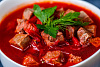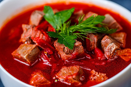 Состав: Вода, говядина, капуста, свекла, картофель, морковь, лук репчатый, соль