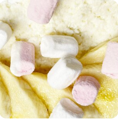 Состав: Начинка: творог натуральный, творожный сыр, сахар, банан, маршмеллоу. Тесто: мука пшеничная в/с, молоко, вода, яйцо, масло подсолнечное, масло сливочное, сахар, соль.