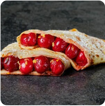 Состав: Начинка: вишневая начинка (вишня, сахар, пектин цитрусовый), шоколад молочный. Тесто: мука пшеничная в/с, молоко, вода, яйцо, масло подсолнечное, масло сливочное, сахар, соль.