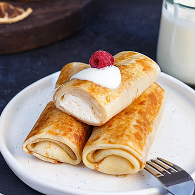 Десертные блинчики с вкусной и нежной творожной начинкой.