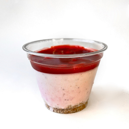 Состав: Сыр творожный, печенье "топлёное молоко", сливки, сахар, вода питьевая, яичный желток, молоко, пюре из клубники, клубника замороженная, желатин пищевой, крахмал кукурузный.