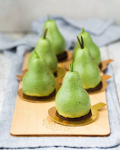 Шикарный вкус груши в необычной текстуре: мусс на сливочном сыре. Невероятное сочетание начики из груши с сыром Дор-блю на тонкой подложке из хрустящего печенья.