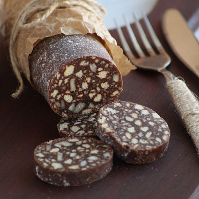 Очень вкусный десерт к чаю. Знакомая многим с детства сладкая шоколадная колбаска из шоколада и печенья. Попробуй ностальгию на вкус!