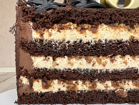 Состав: сливки, сливочное масло, мука пшеничная хлебопекарная, шоколад белый (сахар, какао-масло, цельное сухое молоко, эмульгатор:соевый лецитин, экстракт ванили), арахис, яйцо куриное, молоко, арахисовая паста, желатин пищевой, разрыхлитель, соль.