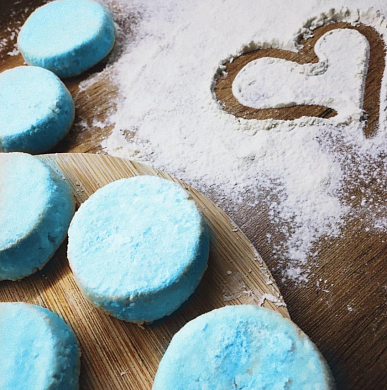 Состав: Творог 5%, шоколад белый 32,8% без сахара, яйцо куриное, сахар, крупа манная, мука пшеничная, матча голубая (лепестки клитории измельченные), соль пищевая поваренная